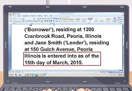 Add the date. Also include the date the loan agreement is entered into. The date is important in case a legal dispute arises. You can state “…is entered into as of the 15th day of March, 2015.”