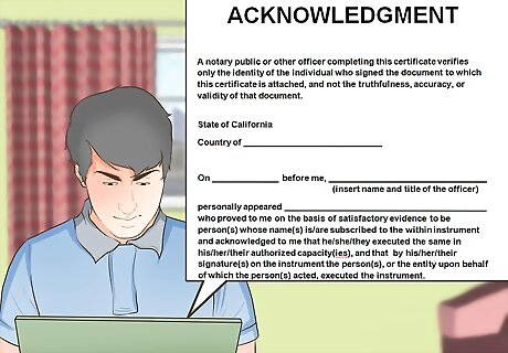 Insert a notary block. Generally, you do not need loan agreements to be notarized. However, it can provide protection in case a legal dispute arises and there are questions about whether or not one of the parties signed the agreement. Find an appropriate notary block for your state. Search “your state” and then “notary block” or “acknowledgement” using your favorite web browser. Sample blocks are often posted online. Here is sample language for California.