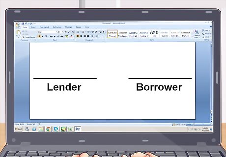Create a signature block. At the bottom of the page, include signature blocks. There should be one for the lender and one for the borrower. Leave space so that each party can write in the date on which they signed the agreement.