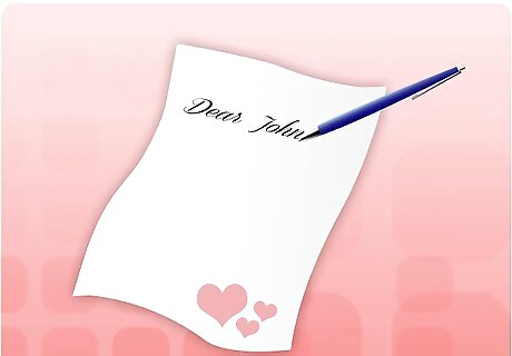 Find out the boy's name and write "Dear (insert name)" at the top of the page. Make sure to address him by his first name or his nickname. Last names are too formal for a love letter. Don't use names like "cutie" or he might freak out. 'Cutie' makes it seem like you are literally obsessed with him, which can seem frightening.