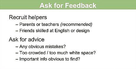 Have someone proofread your resume. No matter how careful you are, and how many times you read over a draft of your resume, there may still be mistakes that your eyes simply do not notice. It is always a good idea to have someone review your resume and provide feedback before you consider it final. Ask them to look for spelling and grammar issues, but also ask them to let you know if any of your statements don't make sense. From a visual perspective, as them if you're resume is too crowded, or has too much white space. Or if any of the embellishments and graphics are too overwhelming. Don't be offended by any of the feedback you receive, it is only going to make your resume better in the long run. And don't feel you need to implement all the feedback you receive. If you do not agree with a specific point of feedback, don't include it. You might want to consider asking the following people to review your resume: parents, older sibling, teacher, guidance counsellor, coach, club leader, spiritual leader, or career centre advisor. As much as your good friends might want to help, you most likely want someone with experience creating several versions of their own resume as a reviewer.