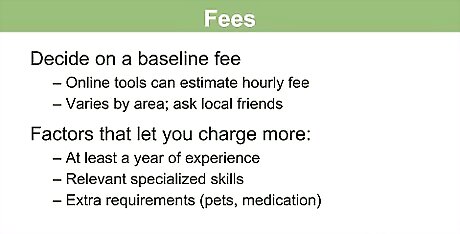 Think about the fees you will agree to. There is no standard hourly rate for a babysitter. The amount normally depends on a number of factors, including: how much experience you have; how many children you'll be looking after; what time of day you'll be babysitting; what types of activities you may be required to do with the kids (e.g. take them on outing, make them dinner, help them with homework, etc.). Before you go to an interview, think about the minimum hourly rate you'd consider. Get advice from friends or family who have babysat recently and ask them what they charged. There are also online tools available that can help you determine the average hourly rate in your area based on your experience and other factors. If you take a babysitter's training course they might provide you with some localized information pertaining to hourly rates that may be helpful.