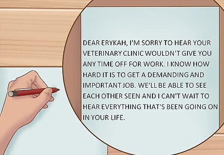 Send thank yous to the guests who didn’t bring a gift or couldn’t make the wedding. Weddings can be difficult to attend, and there may even be some guests who weren’t able to bring you any gifts. These friends and family members should still be thanked and made to feel like they have a special place in your life. If someone couldn’t get out of work, for example, you could write, “Dear Erykah, I’m sorry to hear your veterinary clinic wouldn’t give you any time off for work. I know how hard it is to get a break from such a demanding and important job. I know we’ll be able to see each other seen and I can’t wait to hear everything that’s been going on in your life.”