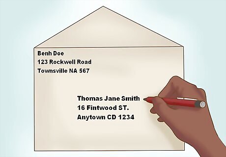 Write addresses properly. You can either print address labels or neatly write the person's address on the envelope. Remember to add your return address to ensure that everyone has your correct new location.