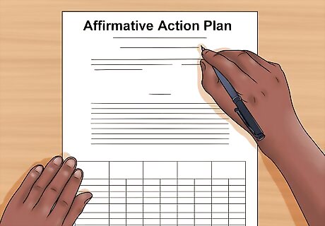 Evaluate employment practices and any past programs. Part of the objective of your self-analysis is to determine whether you have any practices or policies in place that have the effect of excluding people who have historically been discriminated against. If you've had affirmative action plans in the past, take a look at the diversity in your organization before and after the plan went into effect. Look at your job descriptions as well as your hiring and recruitment practices to see if they have the effect of excluding women or racial minorities.