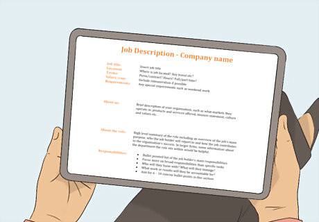 Write job descriptions. Once you know what each department is responsible for, determine exactly what tasks each employee does within each department. This will help you evenly distribute the workload and will leave you better prepared to hire new employees when the time comes. It may be helpful to create an organizational chart that outlines who each employee should report to, especially if this is currently unclear in your organization.