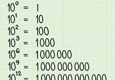 Know some powers of 10. Scientific notation is a way of representing numbers that are based on powers of 10. You can understand scientific notation much easier if you become familiar with several of the powers of 10: 10 0 = one {\displaystyle 10^{0}={\text{one}}} 10^{0}={\text{one}} 10 1 = ten {\displaystyle 10^{1}={\text{ten}}} 10^{1}={\text{ten}} 10 2 = one hundred {\displaystyle 10^{2}={\text{one hundred}}} 10^{2}={\text{one hundred}} 10 3 = one thousand {\displaystyle 10^{3}={\text{one thousand}}} 10^{3}={\text{one thousand}} 10 6 = one million {\displaystyle 10^{6}={\text{one million}}} 10^{6}={\text{one million}} 10 9 = one billion {\displaystyle 10^{9}={\text{one billion}}} 10^{9}={\text{one billion}} 10 12 = one trillion {\displaystyle 10^{12}={\text{one trillion}}} 10^{{12}}={\text{one trillion}} Note that these are the American terms for the multiples of ten. In Britain or countries following the British system, 10 is called a “thousand million” or a “milliard,” and 10 is called a “billion.” In the British system, a “trillion” doesn’t happen until 10.