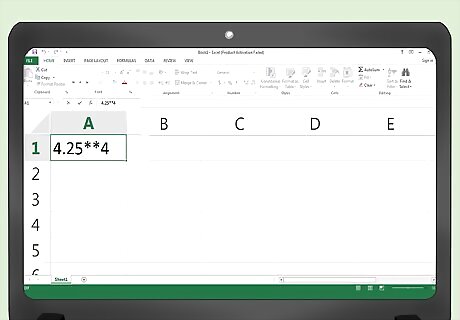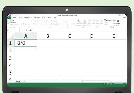 Use a carat (^) to enter exponents in Excel. When you are entering a function in Excel and wish to enter an exponent, use the ^ symbol between the base number and the exponent. Excel will not actually print the exponent as a superscript number, but it will mathematically interpret the ^ symbol to work as an exponent. For example, to indicate 2*2*2, which is two to the third power, you would write 2^3. Excel will interpret this as the value 8. To write the number 5 in Excel, you will enter 5^2. This will then print as the value of 5*5, which is 25. LaTeX is a typesetting program used commonly in academia. LaTeX also uses the ^ to indicate exponents. If the exponent involves more than a single character, the exponent is set off with braces. Thus, 2 would be written as 2^{23}.