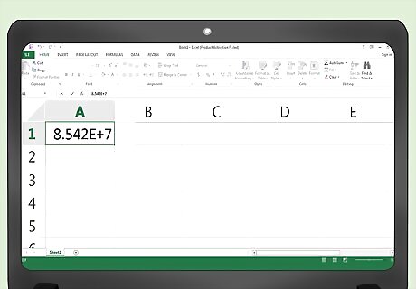 Use “E+” to show scientific notation. In Excel, and on some handheld calculators, the notation “E+” is used to write numbers in scientific notation. First, print the number using a single decimal place, then the E+, followed by the exponent for the power of 10. For example, to express the number 85,420,000, begin with 8.542. Then follow immediately with E+ and the power of ten, which is 7. The final number will appear as 8.542E+7. Texas Instruments calculators use this system for scientific notation but do not use the “+” symbol along with the E. Therefore, a number like 92,000,000 would appear simply as 9.2E7.