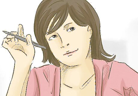 Rest the barrel on the bottom knuckle of your middle finger. This is similar to the positioning in which most people write. If the middle finger is guiding and squeezing more than being used as a resting point, adjust the pen’s rear closer to the V created where the thumb meets the hand. It may feel more comfortable to place the pen closer towards the end of your middle finger, past the knuckle.