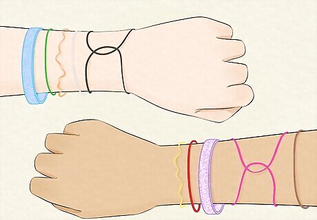 If someone snaps your bracelet, they want what you’re offering. Jelly bracelets are most commonly worn at school and parties to say, “Hey! This is what I’m into.” This is also known as a “sex game.” If someone is also into the same thing or is ready to try the sexual act out, they’ll snap that color bracelet on, or even break it off, the wearer. For example, say Lisa is wearing an orange jelly bracelet. This means she is willing to kiss someone. If Johnny goes up and snaps the orange bracelet on her wrist, he’s willing to kiss her.