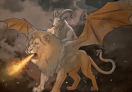 Manticore The manticore is another hybrid monster from Persian and Greek mythology; it’s depicted with the body of a lion, a scorpion’s tail, and a humanoid face (although sometimes, the tail is covered in venomous spines instead that can shoot outward at will). In some myths, the manticore had three rows of sharp teeth in its human mouth and leathery wings like those of a bat or dragon.