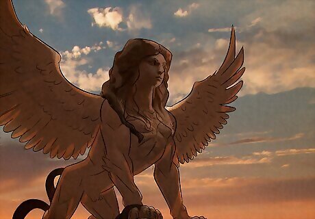 Sphinx The sphinx is another example of a creature that appears in multiple ancient traditions, and is often better-recognized in Egyptian mythology. However, Greek tradition depicts sphinxes as tricky, treacherous creatures with female heads, lion bodies, and birdlike wings. Greek legends say that the sphinx will pose a riddle to any who encounters her, and devour them if they fail to solve it. By comparison, Egyptian sphinxes typically have male heads and lion bodies without wings.