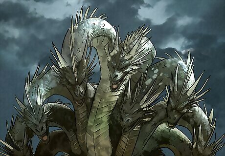Hydra Specifically, we’re talking about the Lernaean Hydra—child of Typhon and Echidna, sibling to Cerberus and the chimera, and a deadly, many-headed serpentine lake monster with poisonous breath and blood. Early portrayals of the hydra give it six heads, then nine—and later, as many as fifty. Writers like Euripides and Virgil didn’t specify the number of heads, but did say that for each head severed, a pair would grow back. Heracles slays the Lernaean Hydra as his second labor, traveling to the monster’s home in the swamp near Lake Lerna.