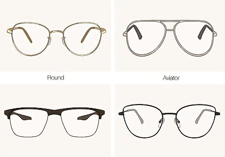 Choose round, cat-eye, or square frames that balance your face. Whether you wear glasses for better vision or need some new sunnies, choose glasses with oval frames to help soften your face’s angles. Or, add more fullness to your forehead with large aviator sunglasses or square and rectangular frames. Cat-eye or browline style glasses add width to your brow and forehead area to offset the width of your jawline. Try to avoid chunky, butterfly, angular, oversized, or geometric styles that can overemphasize the angles of your face.